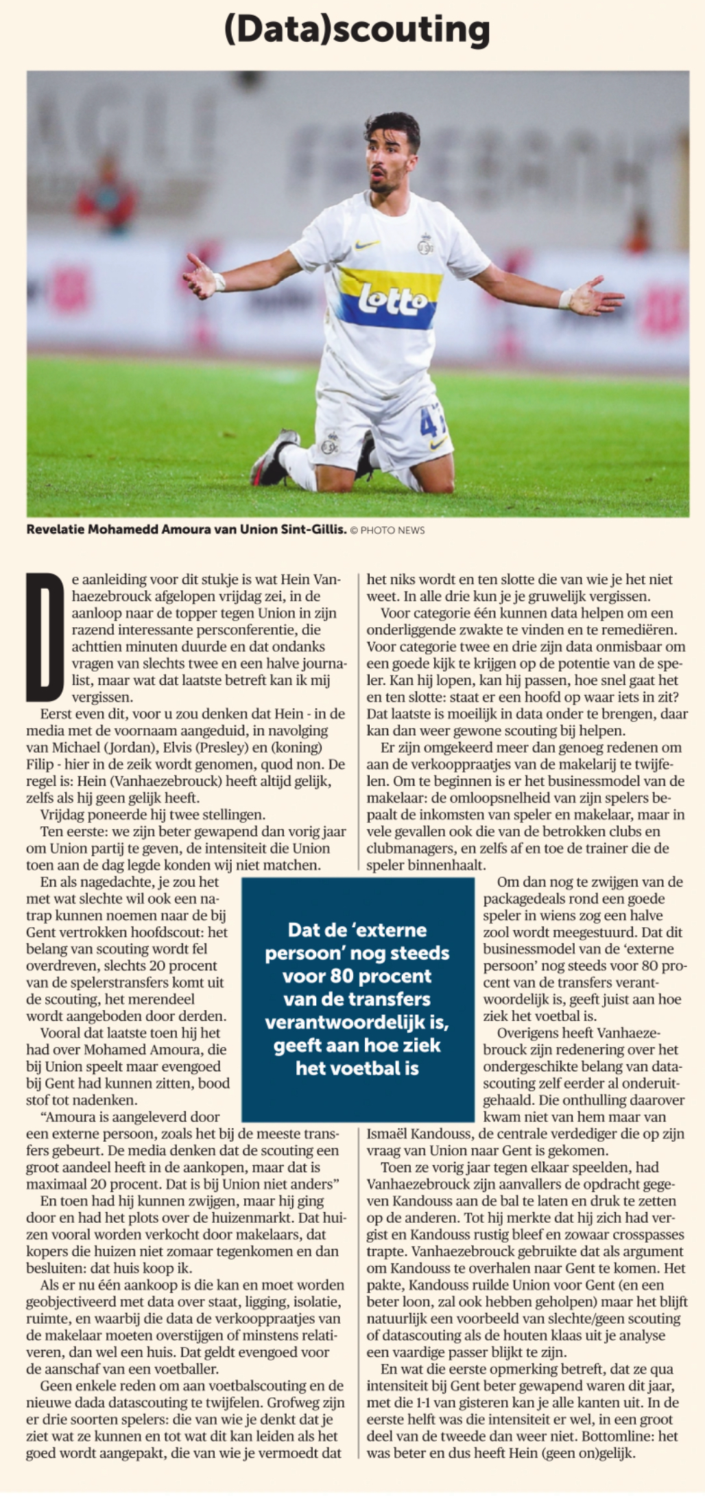 Die 10.000 per maand is een fractie van het gemiddelde salaris van een profvoetballer in België, maar meer dan geld genoeg voor vleesgeworden zwaktebod. Voor die bedragen mag je wat terug vragen. Zoals een reglement van naald tot draad kennen. Of zich de moeite getroosten een situatie goed in te schatten.