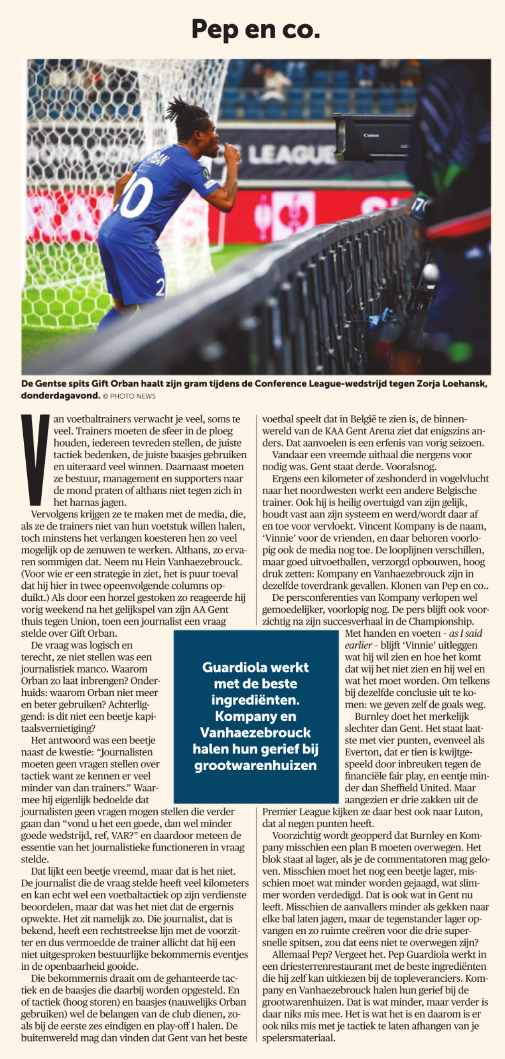 Het wérd uitgelegd. Als een foute interpretatie van een spelsituatie, een menselijke fout, dus geen reden om te herspelen. Bijzonder vervelend was dat de VAR-ref ene Kevin Van Damme was, dezelfde die vorig seizoen de elleboogstoot van Buchanan op Orban bij Club-Gent niet herbekeek. Hij werd daarvoor geuit als een Club-supporter, maar op Mechelen flikte hij zijn favoriete club. Ongeschikt voor de taak, zoveel is duidelijk.