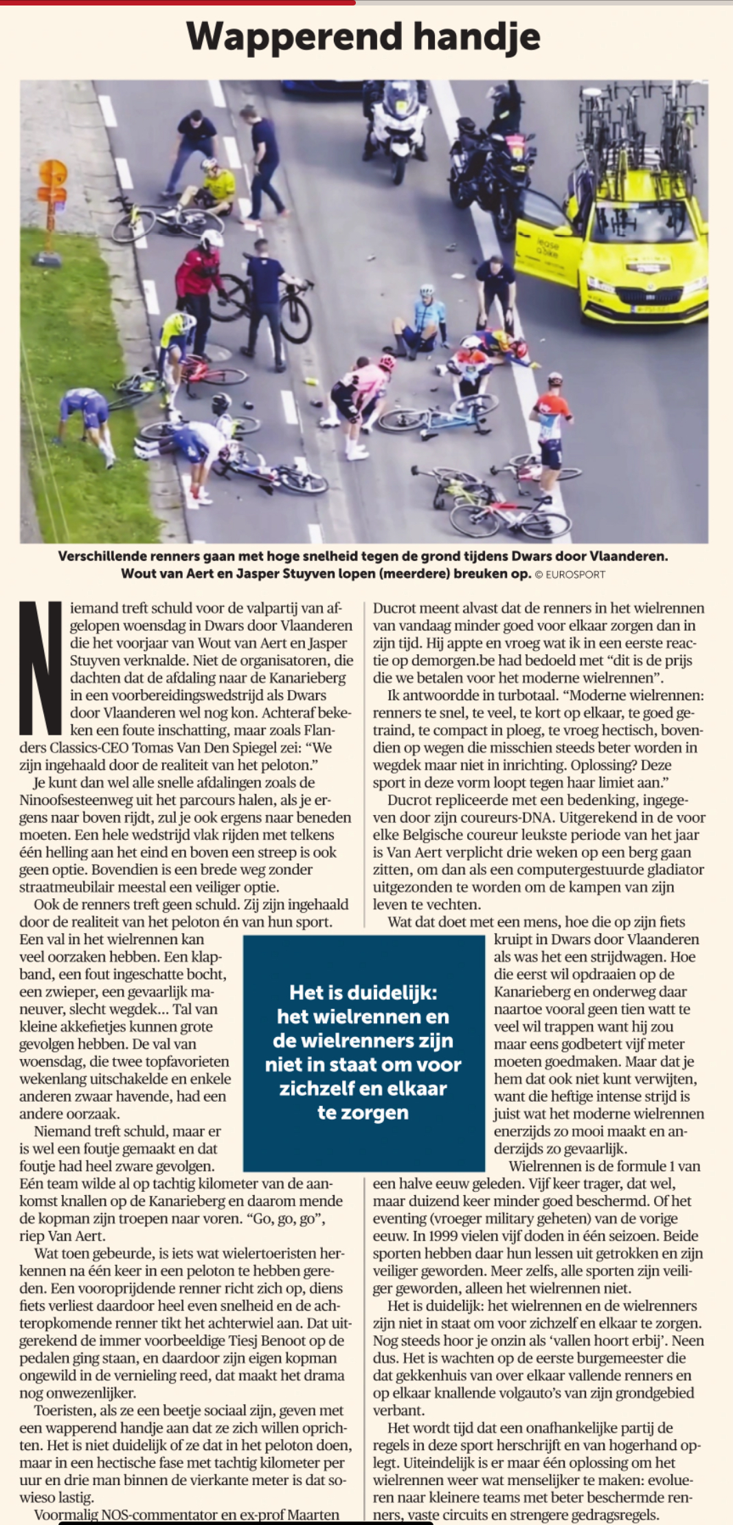 Zaterdag gaan ze van start. De Giro is al het eerste event dat min of meer is getroffen door calamiteit. Althans vanuit Belgisch oogpunt, want de kans is klein dat Pinco Pallino (Jan met de pet in het Italiaans) wakker ligt van de afwezigheid van Wout van Aert, tenzij Pinco heel wat van koers kent.
