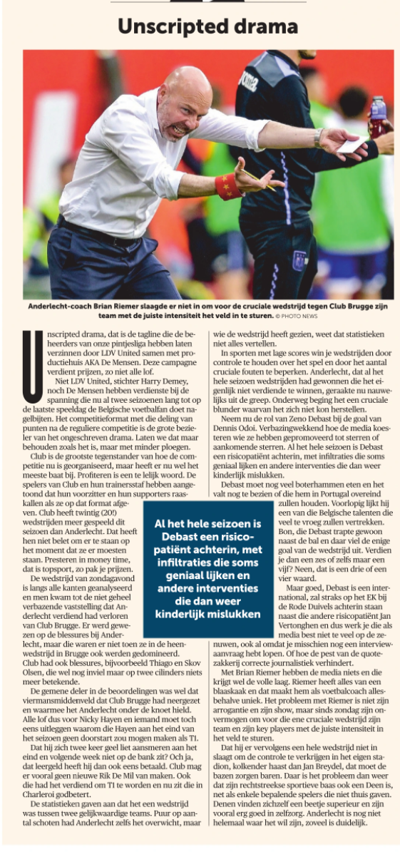 Misschien wordt deze hele discussie iets voor de lessen sportgeschiedenis: “Ooit deden we in het voetbal aan mensenhandel.” In de zaak-Diarra, een Fransman die in 2013 zijn transfer naar Charleroi door de neus geboord zag vanwege de FIFA-reglementering, heeft de eerste advocaat-generaal van het Europees Hof recent in een advies geoordeeld dat de FIFA-transferregels beperkend zijn voor het vrij verkeer van personen en dus in strijd met de Europese regels.