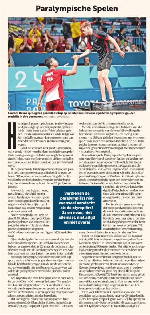 De negatie van de Paralympische Spelen op dit plekje in de krant stootte een aantal lieden flink tegen de borst. “Of topsporters met een beperking die het bovendien beter doen dan de olympiërs zonder beperking niet evenveel aandacht verdienen?”, probeerde iemand.