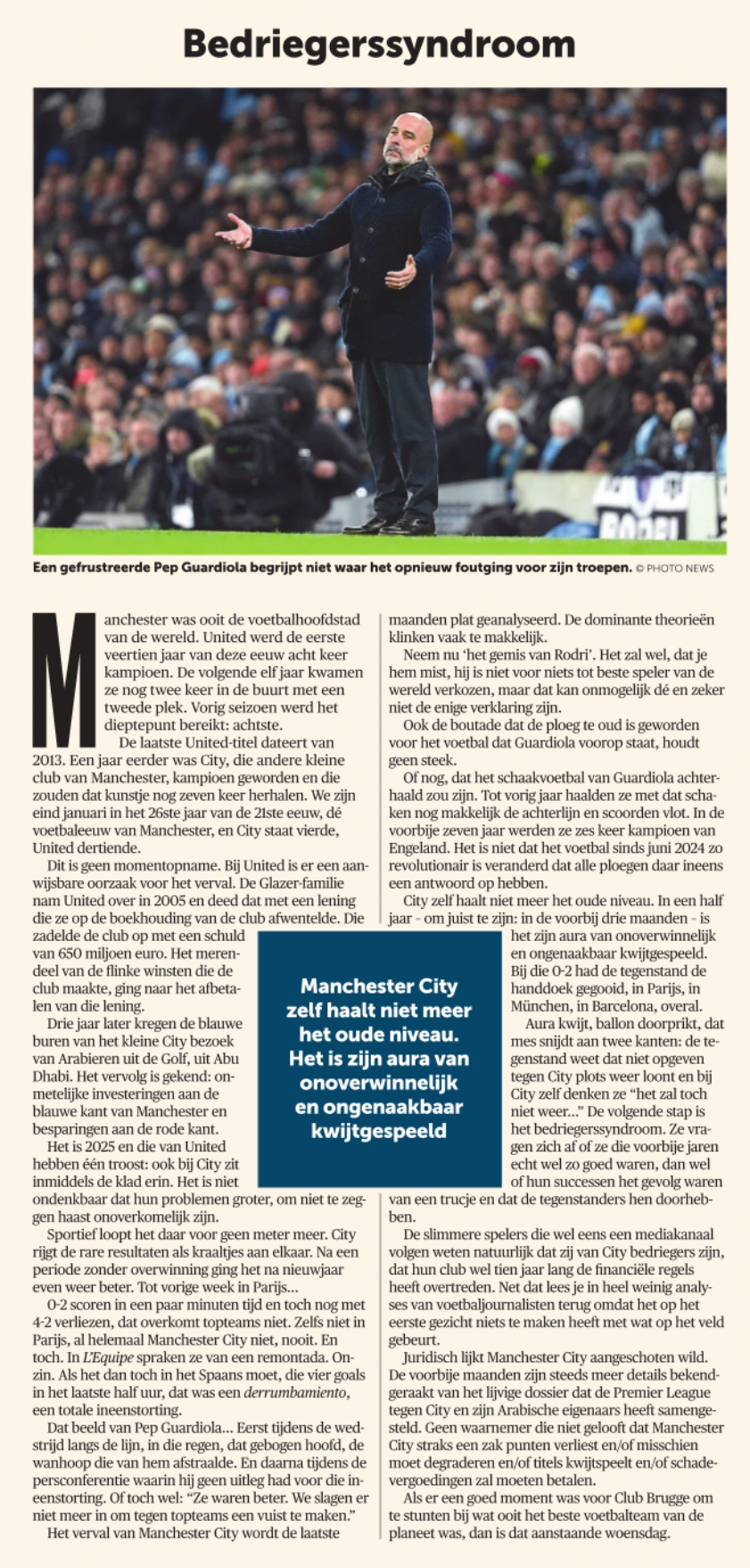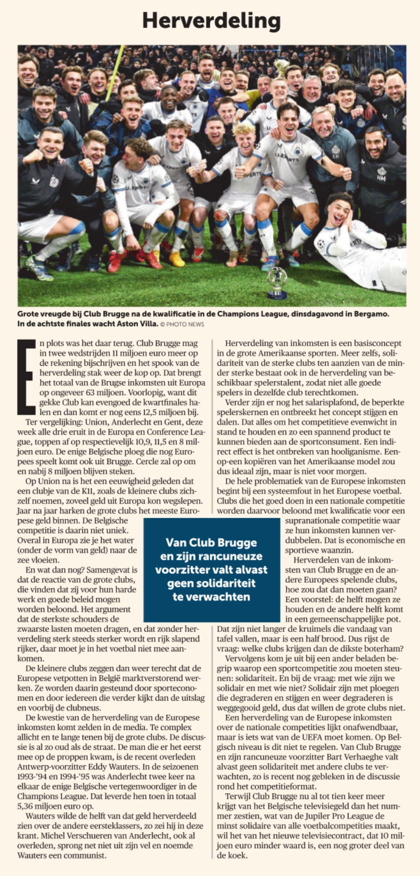 Gisteren was het weer prijs. Weer kon Bart Verhaeghe zich niet bedwingen. Club verloor ongelukkig met 1-2 van Standard. Weer na Europees voetbal, maar nu wel met vier volle dagen rust. Club heeft geen fysiek probleem. Dat het telkens punten laat liggen na een Europese knalprestatie, heet decompressie. Met andere woorden, het zit tussen de oren. Toch lichtjes vreemd met een mental coach aan boord en een hoofdcoach die als speler zelf aan elkaar hing van de intrinsieke motivatie.