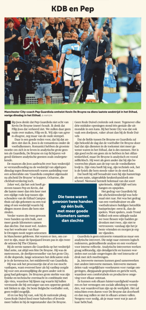 Een analist hoort ook een klein beetje afstand te houden van de wereld waar hij tot voor kort deel van uitmaakte. Een ontluizingsperiode is misschien wat overdreven, maar een beetje schroom en discretie zijn op hun plaats. Hein Vanhaezebrouck die met zijn gekende zelfvoldane glimlach op het gezicht meteen in augustus en daarna een heel jaar KAA Gent fileerde, dat wrong. Of die het niet wilde hebben over de Rode Duivels zolang er geen nieuwe bondscoach was aangesteld, dat was dan weer lachwekkend.