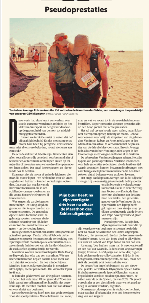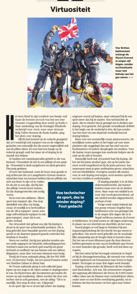 Maar goed dat we daar in de sport nog niet aan toe zijn. Wij weten ten minste dat we deel zijn van een grote business: het sportentertainment. En zo gedragen we ons ook: het slaat soms echt helemaal nergens op. Wat het voorbije moment met een nooit geziene stelligheid is geponeerd, wordt even later met een verbazingwekkende zekerheid tegengesproken. Overtuigend klinken en een beetje maar ook niet te veel controverse oproepen, dan is het al lang goed.