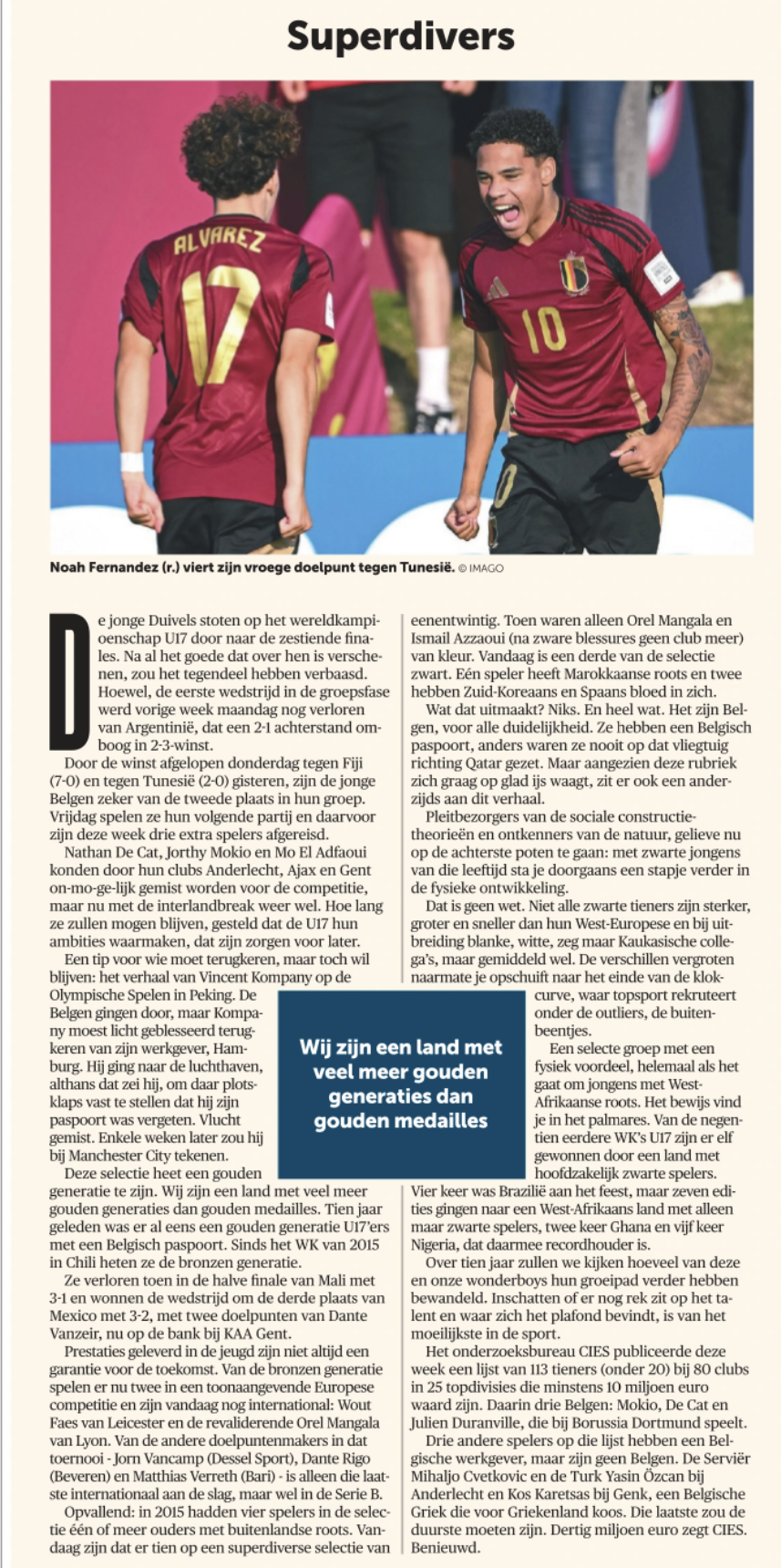 Misschien toch maar beter een verbod uitvaardigen op het uitzenden van jeugdinterlands. Opdat we bijgevolg niet te veel aandacht besteden aan hun prestaties. Omdat alleen telt wat ze later op het hoogste niveau zullen presteren. Als ze daar al geraken en als ze daar kunnen blijven.